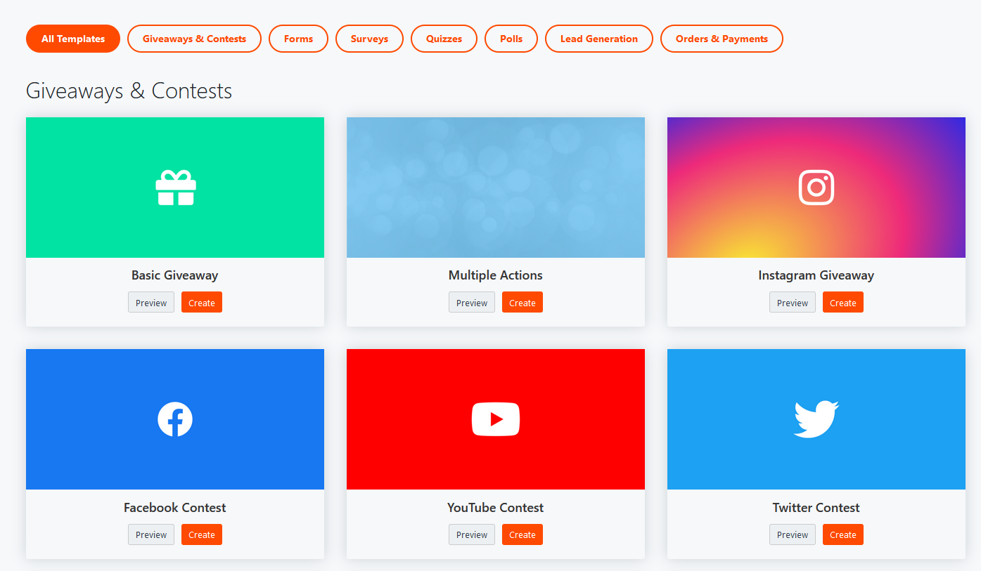 - Giveaways & Contests: Build powerful giveaways, contests and competitions. Collect entries and inspire your audience to engage with your goals.